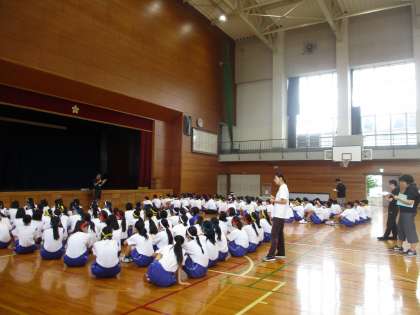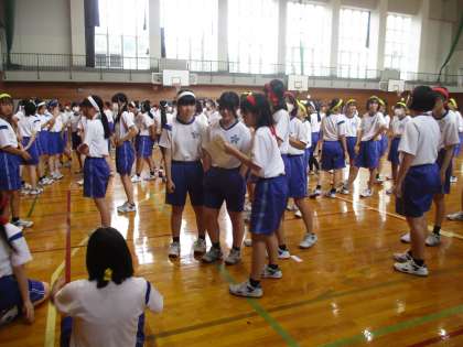 2限目は、体育大会に向けて100メートル走や入場の並び方の練習をしました。リーダーを中心に素早く整列していました。