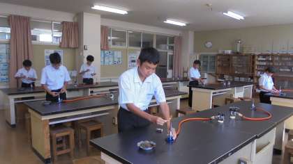 ガスバーナーの使い方の実技テストを行っていました。