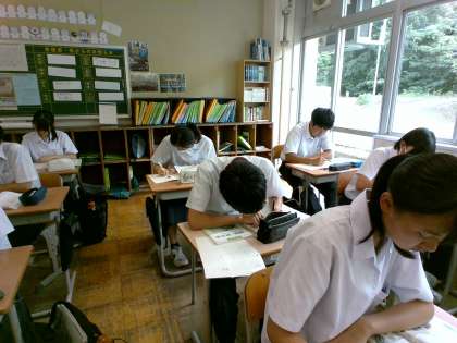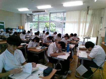 今日は数学の計算問題プリントを全員で解きました。担任の先生に採点を頼んだり、つまづいた箇所を質問したりしていました。やり終えた生徒は、思い思いの教科の学習を進めていました。9月17日(月)も実施します。