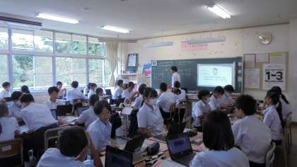 ワークシートやクロムブックを使って、自分の考えを整理していました。どのクラスも集中して活動していました。