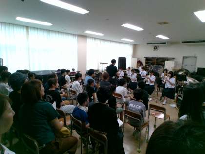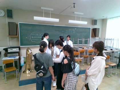 9月21日(土)は富山市中学校公開日でした。小学校6年生とその保護者の方が来校され、授業参観、学校説明会後は部活動見学でした。吹奏楽部では1・2年生が「ハナミズキ」を披露しました。その後、楽器を手に取ってもらい楽器の紹介もできました。たくさんの6年生が演奏を聴いてくれたので、来春が楽しみです。