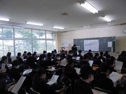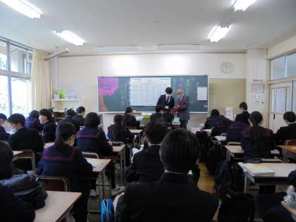各学級では、新しい担任の先生と顔合わせをしました。みんな静かに話を聞いている姿が印象的でした。(上から、21H・22H・23H)
