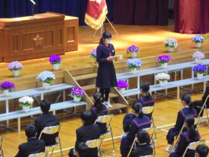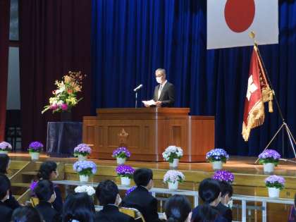 式では国歌斉唱に続いて、山木校長が式辞を述べました。