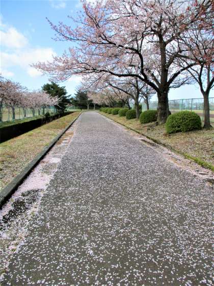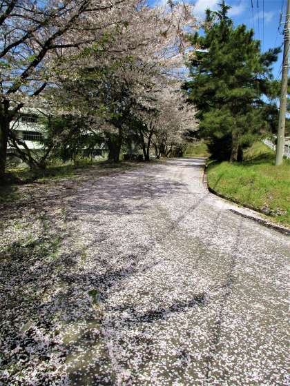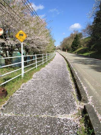 3日前の画像です。桜の花びらが散って、道をピンク色にしていました。