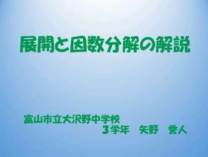 学習動画 3年数学 展開・因数分解の解説(矢野先生)