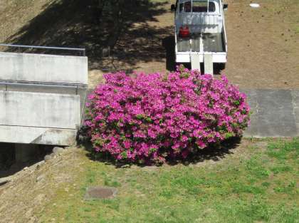 画像上は、友情の池の南側のピンクのツツジ、画像下は、ランチルーム横の赤のツツジです。