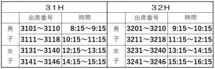 明日は31Hと32Hです。日程は、下の画像のとおりです。時間を確認した上で、学校(468−2600)へ電話をお願いします。