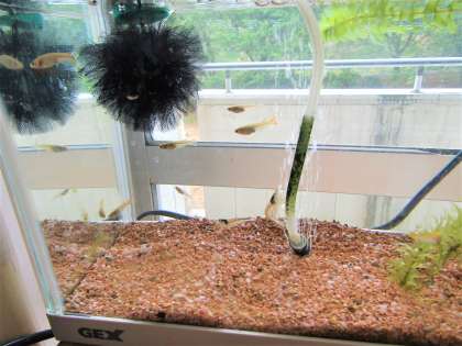 ある教室のメダカの水槽に新しい仲間が加わりました。
