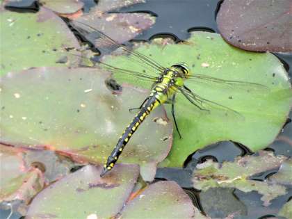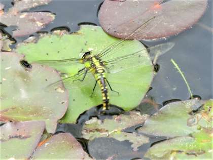 睡蓮を撮影していたところに、トンボが来て葉にとまりました。