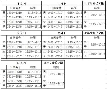 本日が、最後の電話連絡となります。日程は下記の通りです。時間を確認した上で、学校(468−2600)へ電話をお願いします。