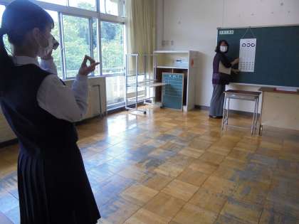 12Hと13Hは、同じ教室で視力測定を行いました。