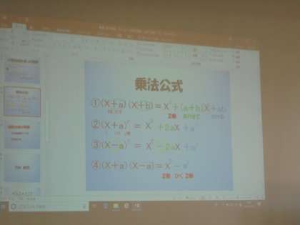 大きなスクリーンに公式が映し出され、それを参考に問題を解いています。