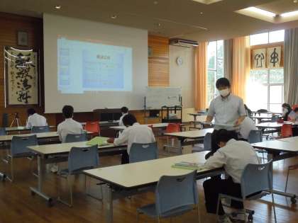 32H 数学 ランチルームで授業が行われています。