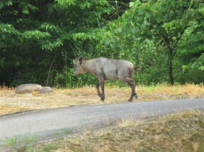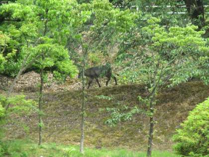 5限の時間に「ニホンカモシカ」が、学校南側の給食搬入の道路を歩いて、学校敷地に侵入してきました。