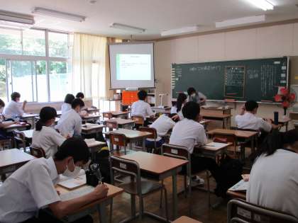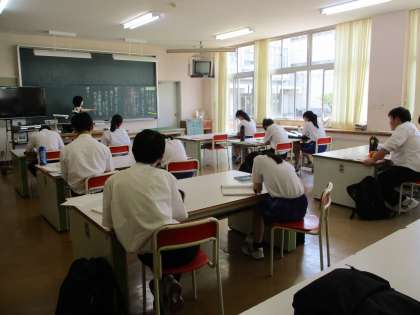 画像下:34H偶数生徒 国語。「握手」井上ひさし