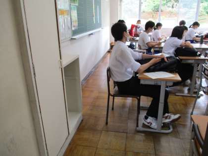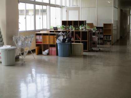 画像上は、3年教室です。後ろのロッカーがなくなった分だけ、少しスペースができました。