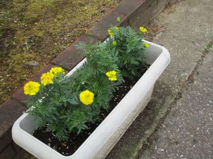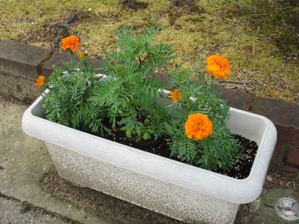 「マリーゴールド」の由来は、聖母マリアの祝日にいつも咲いていることから、マリア様の黄金の花=マリーゴールド だそうです。