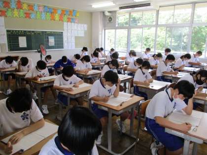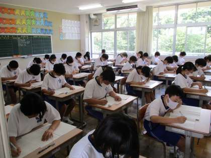 1限にテストの受け方等について学級指導を行い、2限に国語、3限に理科を行いました。