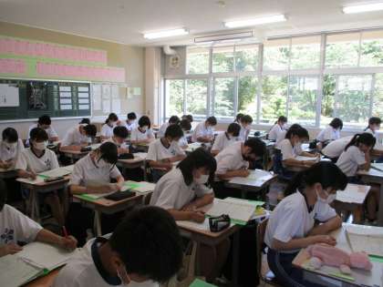 2年生はどの学級も真剣に考えて、意見や質問を書いていました。