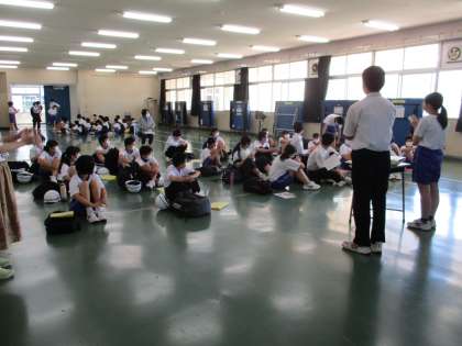 普段は教室で行っていますが、今回は「密」になるのを避けるため、体育館と卓球場で行いました。