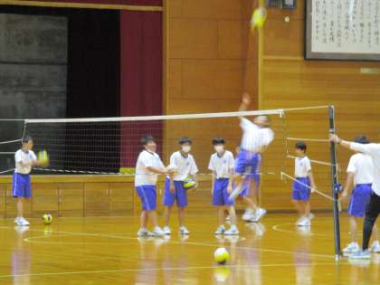 画像上、中:23H保健体育 バレーボールのスパイク練習