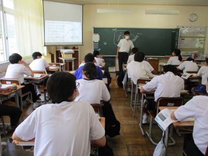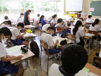 画像下:35H数学 平方根のプリントに取り組んでいます