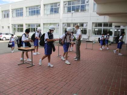 今朝は、生徒が登校してくる頃は日差しがありました。朝からとても蒸し暑い日となりました。