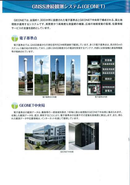 電子基準点の詳細については、電子基準点に関するパンフレットをクリックするとご覧になれます。