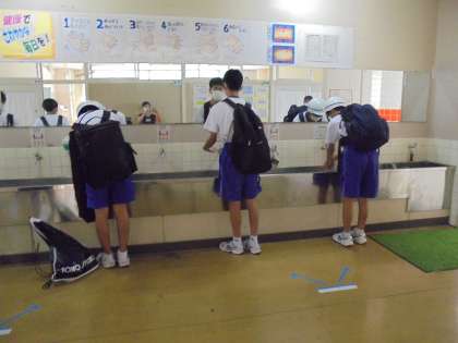 月曜日からは、いよいよ3年生も手洗いをします。手洗いも含めて登校時刻に間に合うよう、時間を意識して行動していきましょう。
