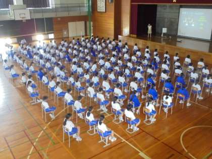 1年生は、6限に体育館で学年集会を行い、合唱コンクールの説明をしました。