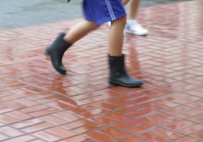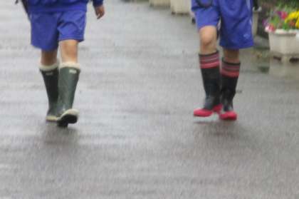 是非、雨の日は長靴やレインシューズを履いてきてください。冬場に履くスノトレでもよいです。色は何色でもかまいません。