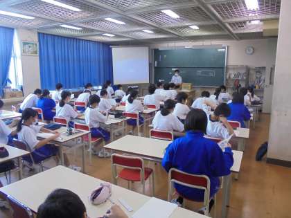 写真上 14H 美術 ケント紙に自分の手を描きます。