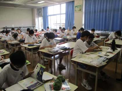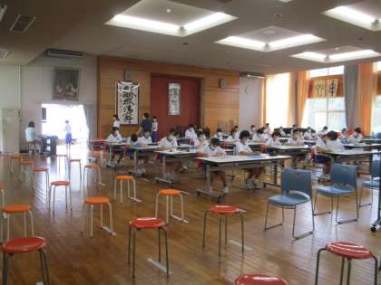 画像上:13H音楽 ランチルームで歌唱(校歌)のテスト