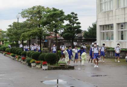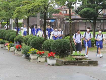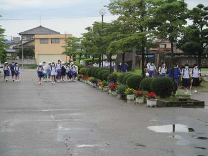 今朝は、生徒が登校してくる時間には、雨がやんでいました。