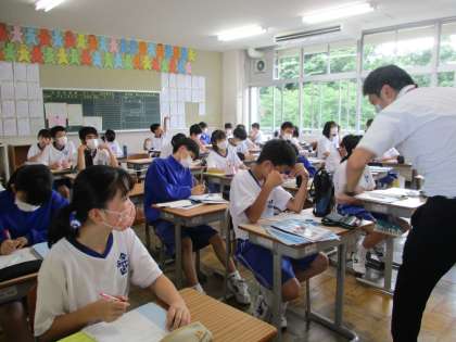 画像上、中:11H保健体育 バレーボール 対人パスを行っていました。難しいですね。