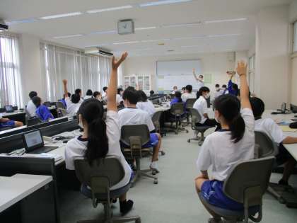 画像上:22H技術 コンピュータ室で生活実態調査の入力