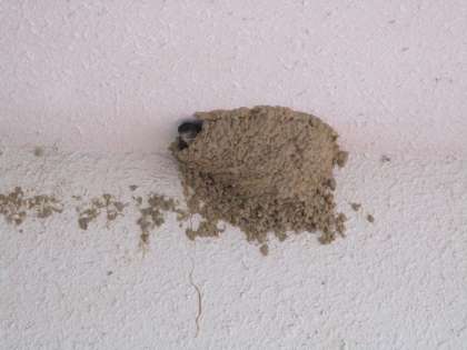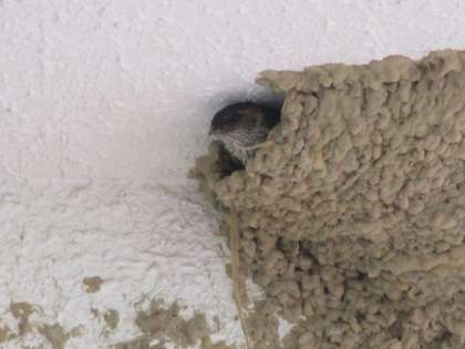以前から作りかけていたのですが、今ではしっかりと完成し、何羽かのツバメが出入りしています。この後、卵を産んでヒナがかえるのでしょうか。