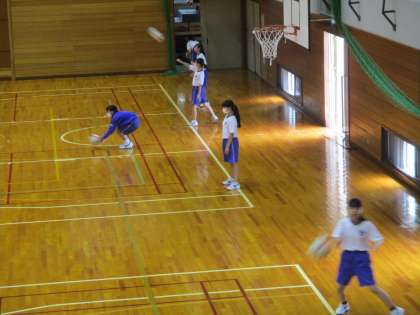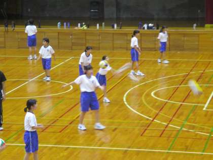 画像上、中:13H保健体育 バレーボールのサーブレシーブを練習していました