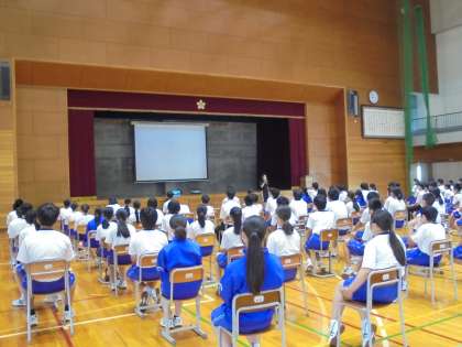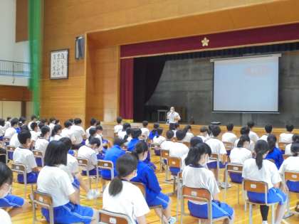 集会では、生徒は、暑さに負けず、真剣に話を聴くなど、とてもがんばっていました。