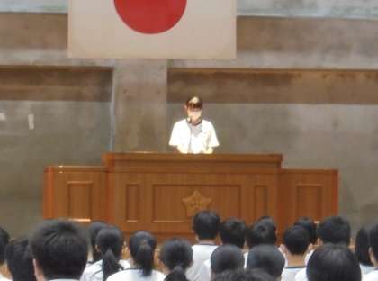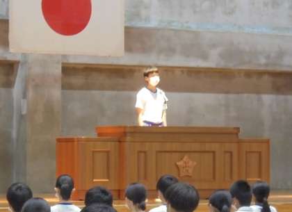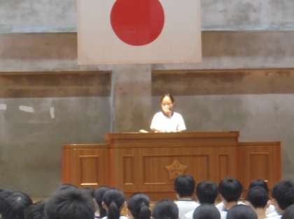 3名とも1学期を振り返って、学習や部活動、学校生活についてなど、自分の意見をしっかりと生徒に伝えていました。3名ともすばらしい発表、ありがとうございました。