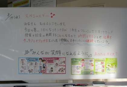今日も、1年生のホワイトボードにメッセージが書かれていました。