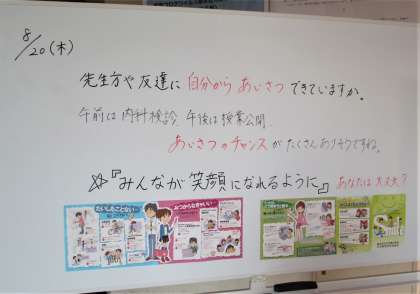 今朝も1年のホワイトボードにはメッセージが書かれていました。