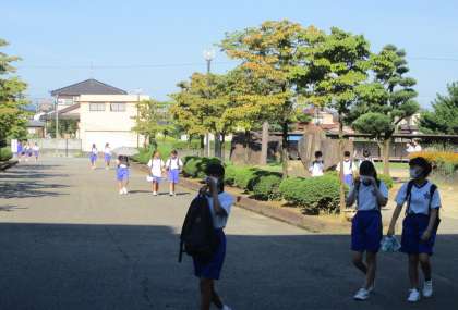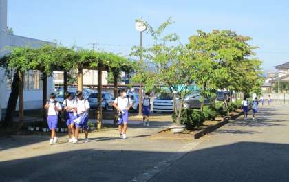 今朝も強い日差しの中、生徒が元気に登校してきてくれました。