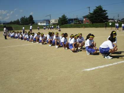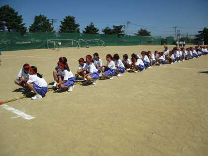 画像は、女子綱引きで、金龍団と赤鷹団が綱を引く準備をしているところです。
