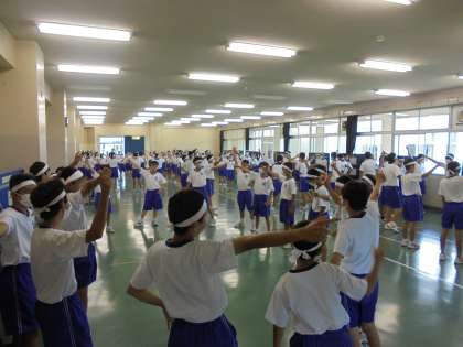 今日は予行練習の予定でしたが、気温が高くなる予報だったので、予定を変更して1,2限に団別練習を行いました。