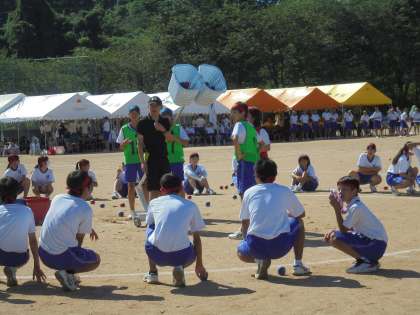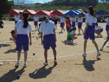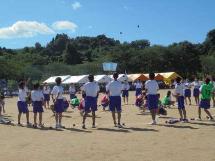 2年生学年種目「ボールスプラッシュ」の様子です。 写真は赤鷹団です。