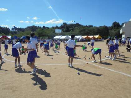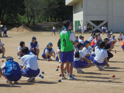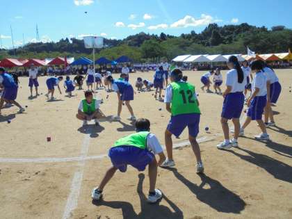 2年生学年種目「ボールスプラッシュ」の様子です。 写真は青龍団です。