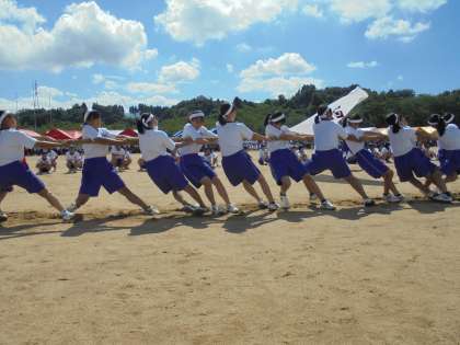 写真は、女子綱引き(白鳳団)の様子です。