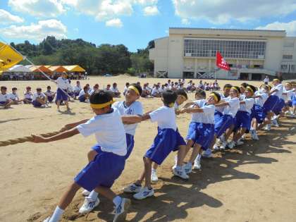 写真は、男子綱引き(金龍団)の様子です。