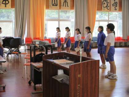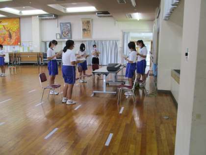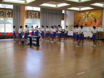画像は31Hの音楽の授業で、ランチルームで合唱コンクールの曲を練習しています。女子のパートには、教育実習生も加わっています。